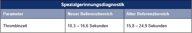 Gerinnungsdiagnostik: Thrombinzeit – Änderung des Referenzbereichs