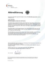 Die Akkreditierung bestätigt das Vohandensein eines Qualitätssicherungssystems und insbesondere die fachliche Kompetenz aller Mitarbeiterinnen und Mitarbeiter.